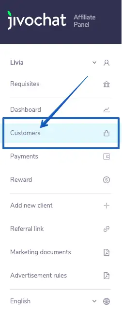 Step 5. Go back to the Affiliate Panel, click on Customer and check if the client is listed on your account.