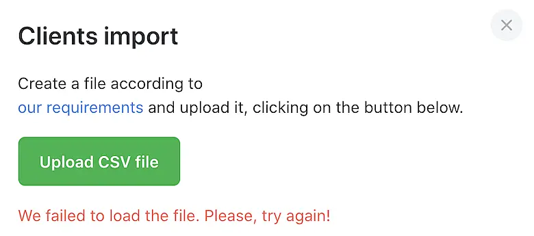 At the top of the CRM page, click on the 'Import customer' option, as in the image below and then select 'Upload CSV file'.
