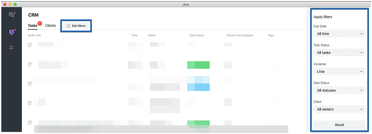 To edit a task, click on "Task" button on the top right side of the conversation window, make the desired changes and click on "Save" button. When the task is changed, its information is automatically updated on "CRM" > "Tasks" section.