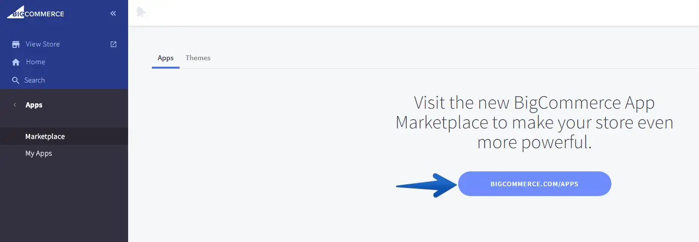 Next, click on the button pointed bellow which will lead you to BigCommerce's Apps page.