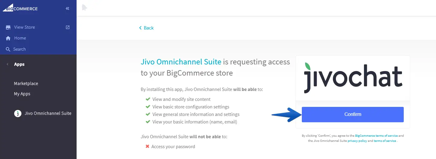 If you don't have a JivoChat account yet, please follow THIS TUTORIAL to create your account. You'll notice a installation code will be given to you when you are creating the account, but you can skip this step since our app will automatically install this code for you on your BigCommerce website.