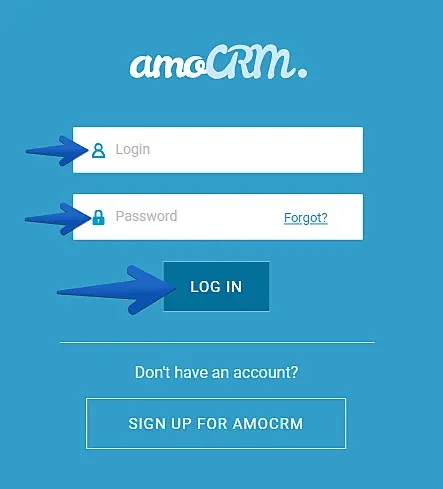 A pop-up will show up. Insert your amoCRM credentials and click to "Log in".