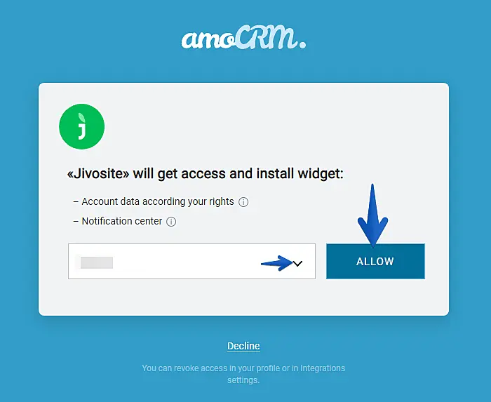 Select which account should be integrated and click to "Allow".
