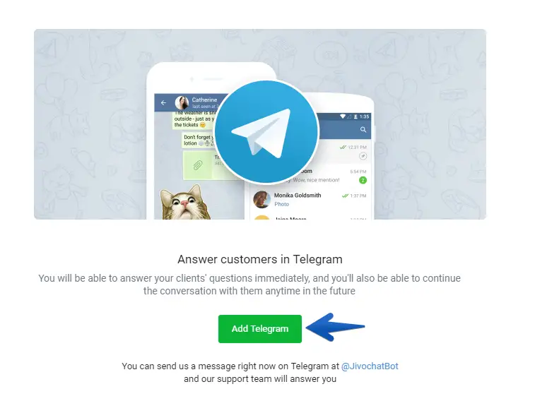 Insert the API key - make sure there are no spaces in it and click on Add Telegram to JivoChat.