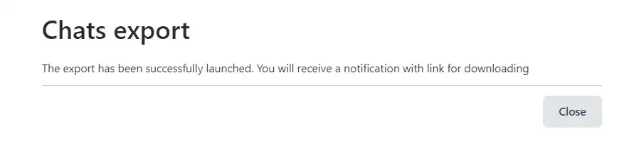 If you find it necessary to download your conversations with clients, you can effortlessly accomplish this task by utilizing the "Chat export" feature, which is accessible with our Professional and Enterprise plans.