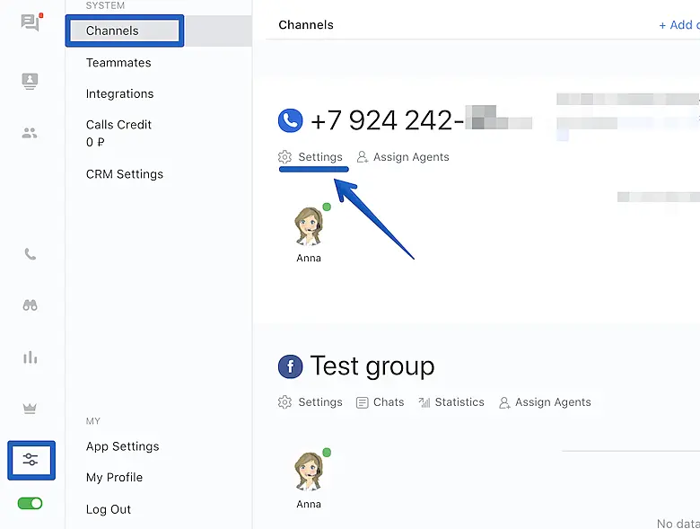 To set up voice greetings for your number open your JivoChat app and navigate to Manage > Channels > Settings (under the phone number channel) > Voice greetings.